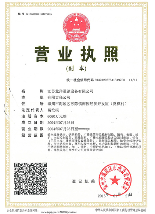 江蘇北洋通訊設(shè)備有限公司 | 江蘇北洋物資有限責(zé)任公司 |